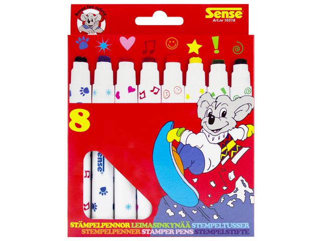 Det här setet med stämpelpennor från Sense® innehåller åtta stämpeldesigner i olika färger som förbättrar alla konstprojekt. Det finns åtta olika stämpelpennor i det här setet från Sense®. Det finns t.ex. en stjärna, spiral, utropstecken och mer. Kan användas för att enkelt utsmycka dina konstprojekt. De passar utmärkt för att skapa levande mönster på kort, papper och andra konstprojekt, och pennorna är ett praktiskt hjälpmedel för både lärare och barn. Den här simpla och roliga stämpelpennan gör det spännande att färglägga. - Stämpelpenna för färgläggning - Har 8 olika stämpelpenna - Lämplig för barn över 3 år - Färger: Blandade - Antal: 8
