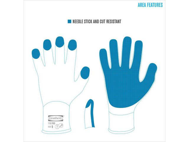 Stickskyddsshandske i nålsticksresistent material med den högsta nivån på skärskydd (F). Stickskyddsshandske 119.7000 ger bra grepp i både våta och torra miljöer. Det nålsticksresistenta materialet finns i innerhand, fingrar och fingertoppar, som ger skydd mot nålar och ökat skärskydd. ASTM nålstick (25 gauge) punkteringsmotstånd är nivå 5. Lämpliga för bl a avfallshantering, återvinning, sanering, hantering av vassa föremål. - CE-certifierade - Godkända enligt: ASTM F2878-2010, EN ISO 21420:2020, EN 388:2016+A1:2018 - Foder: Bomull, Stål - Doppningsmaterial: Latex - Längd: 24-29 cm - Färg: Svart - Storlek: 8