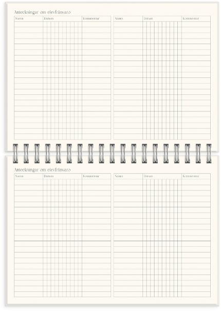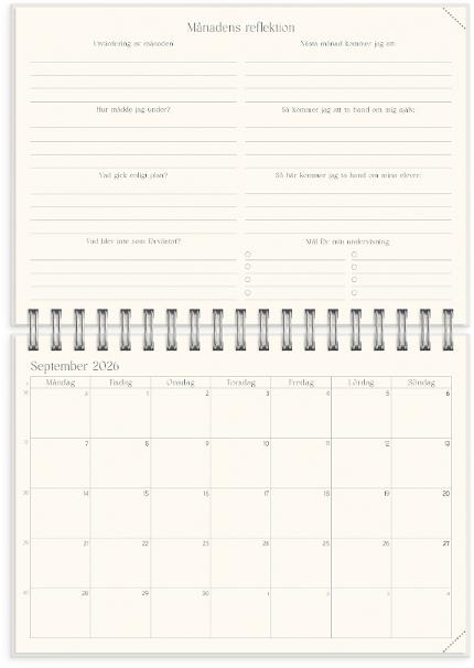 En komplett lärarkalender i ett större liggande B5-format, så att du har gott om plats att planera! Veckouppslaget har timindelning kl 8-17 måndag till fredag, men innehåller även plats för lite helgplanering och övriga anteckningar. Utöver det så finner du bland annat schema, kontaktlista, elevförteckning. Kalendern ger dig även möjlighet till reflektion för att se över utmaningar och framgångar i din vardag som lärare.