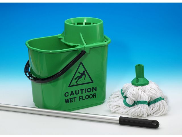 En tålig, lättanvänd och mångsidig rengöringshink från TASKI Diversey med en moppurvridare med handpress. Utnyttja denna praktiska plasthink som kan användas för moppning, skurning och en mängd olika professionella rengöringsuppgifter på bästa sätt. Hinken är tydligt märkt med en varningssymbol, vilket främjar och ökar säkerheten på din anläggning. Märkningen innehåller även de engelska orden 'Varning 'och 'Vått golv' för att varna förbipasserande att golvet är nymoppat. Varje hink är utformad med en praktisk moppurvridare med handpress som gör din rengöring ännu effektivare. Den slimmade hinken är lätt att transportera och förvara, och har ett slitstarkt plasthandtag som förhindrar att ditt grepp glider. Den tåliga konstruktionen är rost- och korrosionstålig samt lätt att hålla ren. Den breda basen och de vinklade sidorna rymmer flera rengöringstillbehör och annat du kan behöva. - Mångsidig rengöringshink för allanvändning - Riskmärkning upprätthåller fastighetssäkerheten - Urvridaren med handpress är bekväm att använda - Material: Plast - Färg: Grön - Mått: 33,5 x 28 x 25,5 mm - Volym: 10 liter