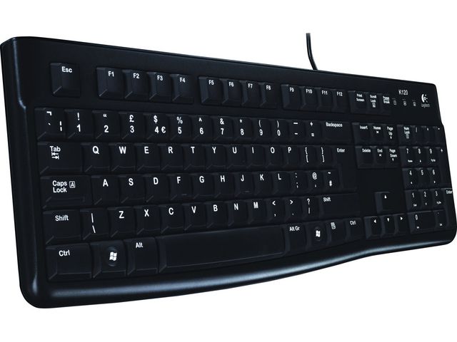 Logitech® K120 är utrustat med F-tangenter i normalstorlek, en elegant låg profil som gör det bekvämt att använda, tåliga tangenter som är utformade för att hålla och ger en enastående smidig och tyst skrivupplevelse. De lättlästa tangenterna framträder tydligt mot det svarta tangentbordet och tål upp till 10 miljoner nedtryckningar utan att slitas. Använd de praktiska ställbara benen för att sänka eller höja enheten efter önskemål. För att ställa in tangentbordet K120 från Logitech® ansluter du bara till USB-porten på den bärbara datorn, netbook-datorn eller stationära datorn och börjar skriva.