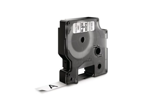 DYMO D1 flexibla nylonetiketter har permanent lim och passar perfekt för märkning av krökta ytor, ytor med struktur eller kablar. DYMO® D1 Flexible Label på 12 mm ger snygga, skräddarsydda etiketter med svart text på vit botten som är snabba och enkla att användas både inomhus och utomhus. D1-tejp med text som har skrivits ut med termisk överföringsteknik ? varken bläck eller toner behövs. Dessa tåliga och hållbara etiketter är vattentåliga, UV-resistenta och de tål temperaturer mellan -10 och 80 °C. De fäster på nästan alla släta och rena ytor inklusive plast, papper, metall, trä och glas. Den självhäftande tejpen är hållbar och svår att ta bort. En perfekt produkt att märka kablar och ojämna ytor med. - Svår att ta bort - Kan lämna limrester - Färg: Svart text på vit botten - Fäster på nästan alla rena ytor såsom plast, papper, metall, trä och glas - Ta enkelt bort skyddsfilmen för snabb och enkel applicering - Mått: 12 mm x 3,5 m - Vattentålig - UV-resistent - Temperaturbeständig