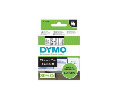 DYMO D1-etiketter erbjuder den prestanda och omväxling du behöver för alla typer av märkning, både inomhus, utomhus, på kontoret, i verkstaden, i butiken eller någon annanstans. DYMO D1-etiketter erbjuder den prestanda och omväxling du behöver för alla typer av märkning, både inomhus, utomhus, på kontoret, i verkstaden, i butiken eller någon annanstans. Etikettkassetten DYMO® D1 på 24 mm ger snygga, skräddarsydda etiketter med svart text på transparent botten som passar perfekt för användning både inomhus och utomhus. D1-tejp med text som har skrivits ut med termisk överföringsteknik ? varken bläck eller toner behövs. Dessa tåliga och hållbara etiketter är vattentåliga, UV-resistenta och de tål temperaturer mellan -18 och 90 grader. De fäster på nästan alla släta och rena ytor inklusive plast, papper, metall, trä och glas. Den självhäftande polyestertejpen är också löstagbar för kortsiktig märkning utan limrester. - Kompatibla med: DYMO LabelMANAGER 500TS, PnP - Självhäftande polyestertejp för snabb och enkel applicering - Färg: Svart text på transparent botten - Inkluderar: 1 rulle - Mått: 24 mm x 7 m - Etiketterna kan tas bort utan att lämna kvar limrester - Fäster på nästan alla rena och släta ytor inklusive plast, papper, metall, trä och glas - Ta enkelt bort skyddsfilmen för snabb och enkel applicering - Vattentåligt - UV-resistent - Temperaturbeständig