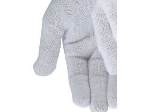 Mjuk handske med ftalatfria PVC (Vinyl)-prickar, noppor. Hjälper till att motverka blåsor, skrubbsår och kontakt med smuts.