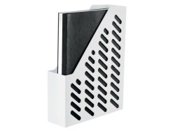 Tidskriftssamlaren KLASSIK ifrån HAN i en klassisk modern design. Med ett praktiskt fingerhål och en extra hög front håller den dokumenten säkert på plats. Tack vare dess design möjliggör den enkel visning av kataloger, broshyrer, tidsskrifter mm i sidled. - Lämplig för lagring av dokument upp till A4 / C4-storlek - Kapacitet: 70 mm - Yttermått (B x D x H): 76 x 246 x 315 mm - Framhöjd: 148 mm - Material: högkvalitativ plast, polystyren (PS) - Färg: Vit
