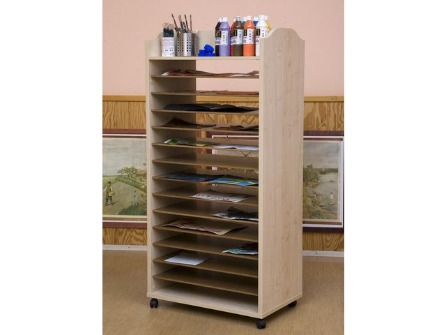 Smidig och stabil torkhylla med 13 hyllplan. Av lönnmelamin. Med krysstag. Hyllplan av MDF. Levereras färdigmonterad med låsbara hjul. Mått: B78 x H164 x D50 cm.