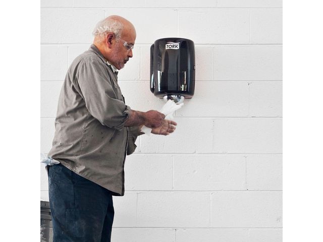 Pappret kan användas i Tork Dispenser Centrummatad, en mångsidig lösning med hög kapacitet för arbetsmiljöer där både hand- och ytavtorkning krävs.