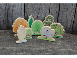 Dessa dubbelsidiga, vackert detaljerade träd är ett fantastiskt komplement till små världsspelscener och berättande.