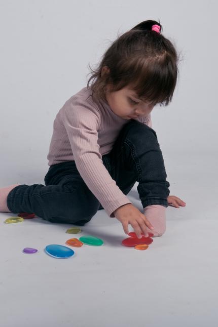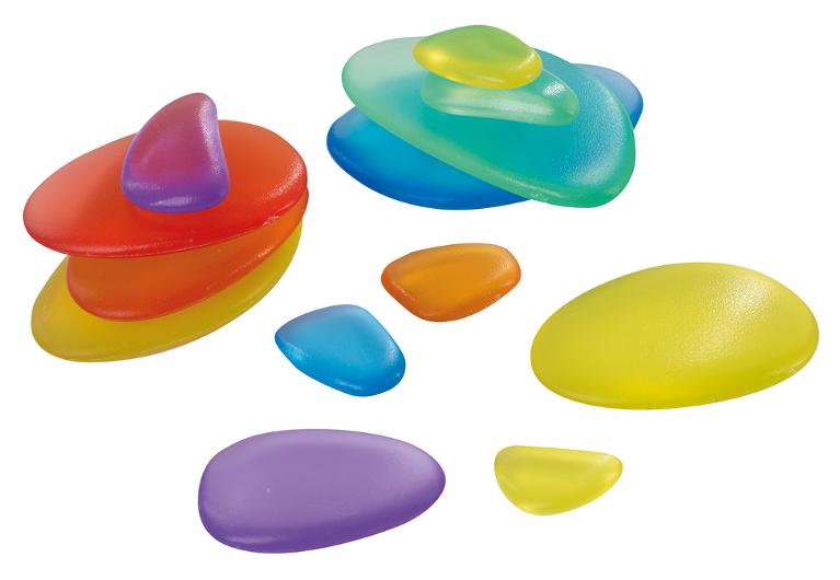Transparenta regnbågsstenar i olika färger som inspirerar till kreativ lek, sortering och färgutforskning. Perfekta för att bygga mönster, räkna eller kombinera färger på ett lekfullt sätt. Ett pedagogiskt material som stimulerar fantasi och lärande.