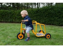 RABO Trehjuling Taxi med ståbräda är en trehjuling med plats för två. Trehjulingen passar barn mellan 1-4 år. Cykeln låter barnen interagera med varandra i social och fantasifull lek. Trehjulingen har två platser vilket gör att två barn samtidigt kan leka på den samtidigt som de interagerar med varandra i lek och rollspel. Med RABOs taxicykle kan barnen åka över hela världen, eller bara över till lekstugan. Mått: (LxBxH) 88 x 51 x 48 cm Säteshöjd: 27 cm Vikt: 10 kg