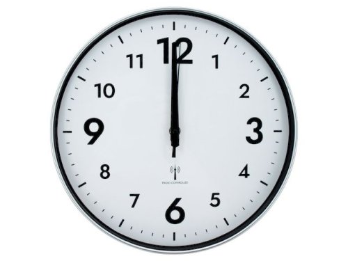 Metallgrå kontorsklocka med exakt tidsangivelse, detta eftersom quartz-urverket är 100 % radiokontrollerat från Brunswick-sändaren. Klockan tidsinställs automatiskt 2 gånger om året (sommar och vinter) via radiovågor.