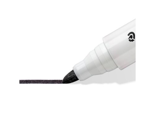 Med den här Whiteboardpennan går det att skriva på många ytor, till exempel glas, porslin och OH-film. STAEDTLER Lumocolor® Whiteboard Marker har en spets som ger cirka 2 mm linjebredd och den passar utmärkt när du vill ha precision och noggrannhet. Den innehåller ett bläck som kan torkas bort från ytor utan att lämna spår. Bläcket torkar inom några sekunder, vilket gör den här märkpennan perfekt för vänsterhänta. Bläcket är dessutom xylen- och toluenfritt, vilket innebär att bläcket luktar mindre. Märkpennan levereras komplett med kork och fickklämma så att den är lätt att alltid ha till hands. Den kan lämnas utan kork i flera dagar utan att bläcket torkar ut. - Icke permanent bläck - Med huv - Rund spets - Linjebredd: 2 mm - Textfärg: Svart - Färg pennkropp: Vit